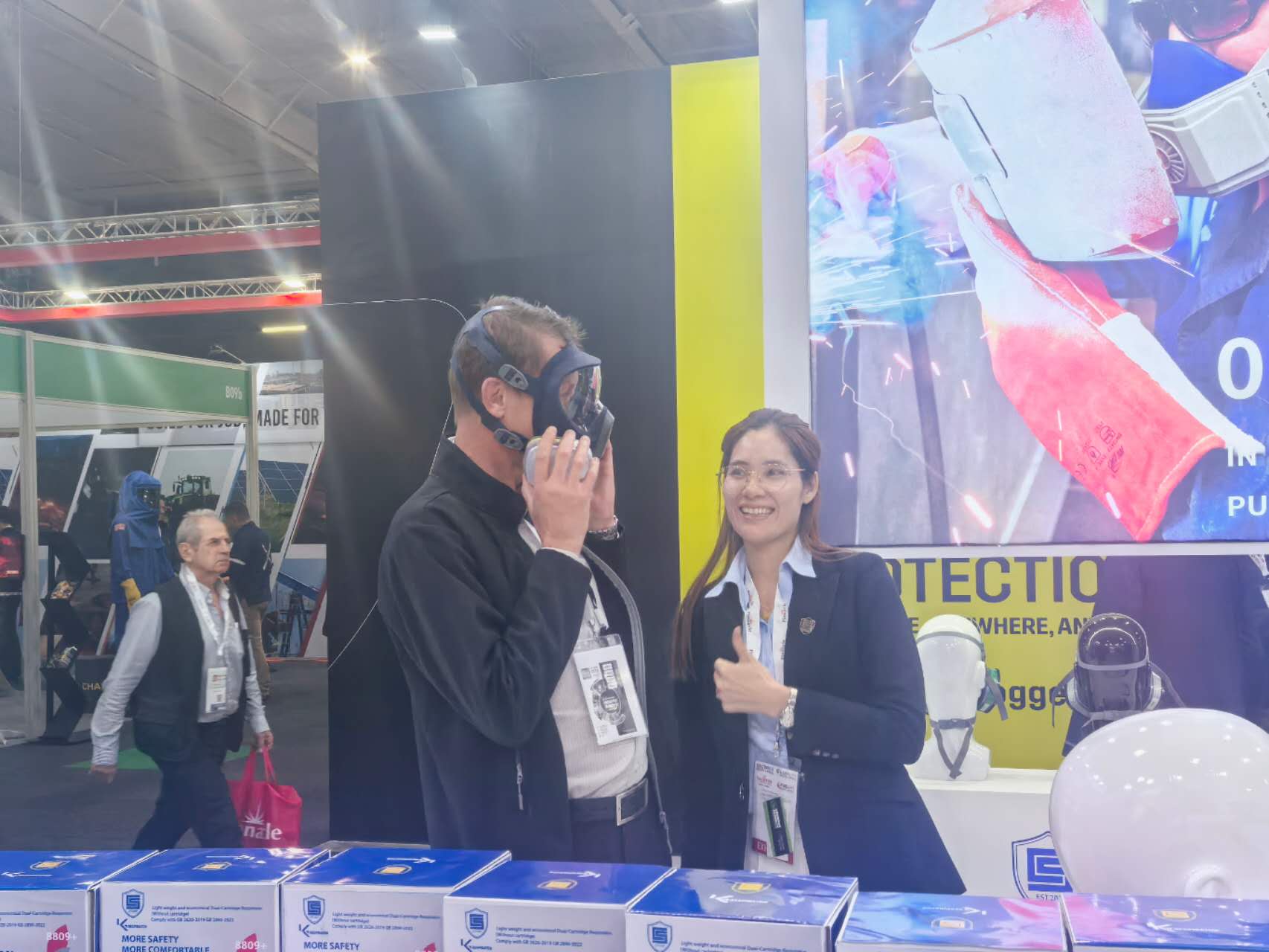 Our engagement was strategically designed to amplify our market presence and showcase our unwavering commitment to advancing protection standards. Our dedicated booth featured our comprehensive portfolio of engineered safety solutions, including particulate protective masks, reusable respirators, disposable masks, half and full face masks, and a complete range of gas filter cartridges. Beyond static display, we hosted live technical demonstrations that highlighted the superior fit, filtration efficiency, and user comfort of our products, while also detailing the rigorous quality control and advanced manufacturing processes that underpin every item we produce. These sessions were complemented by interactive, hands-on training, ensuring visitors gained practical knowledge of correct donning, doffing, and maintenance protocols to maximize safety and product longevity in the field.